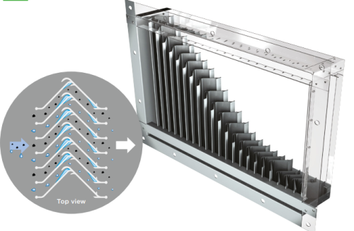 - Lóðrétt prófílkerfi: Loftið er knúið í gegnum röð af lóðréttum ál- eða plastprófílum sem neyða loftstreymið til að breyta um stefnu mörgum sinnum.